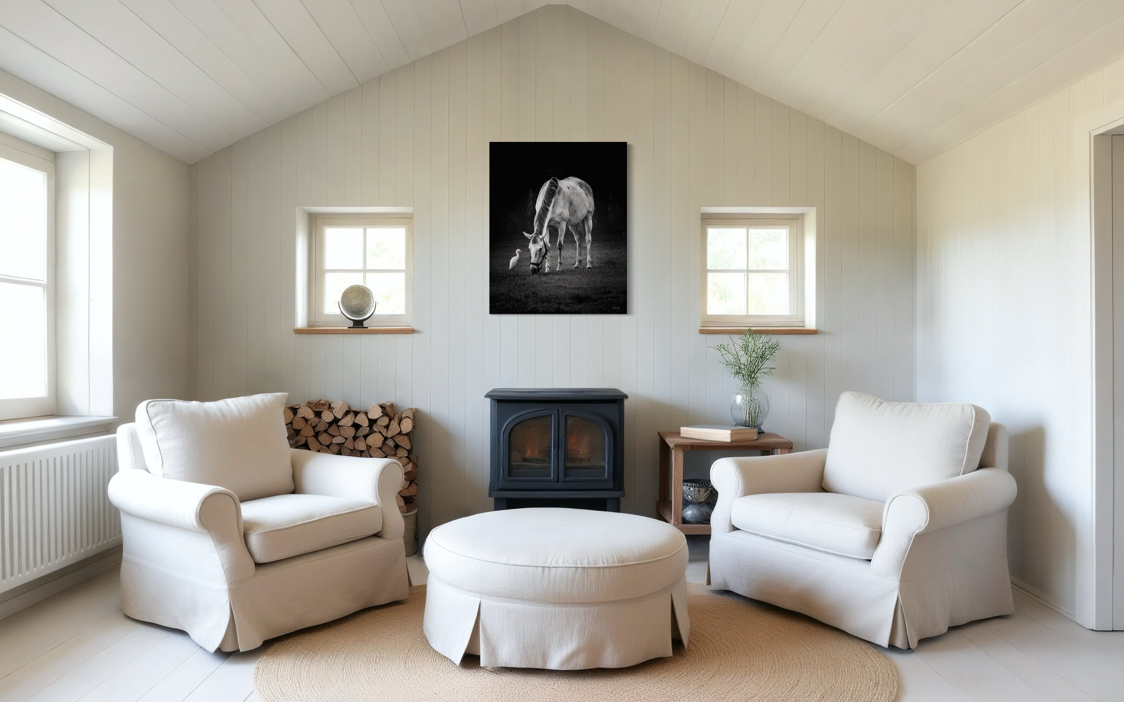 Rendered in timeless black and white, this fine art photograph evokes a deep sense of serenity and emotion. The absence of colour allows the soul of the moment to shine through—revealing a story of hope, companionship, and the sacred stillness that lives in the spaces between heartbeats.