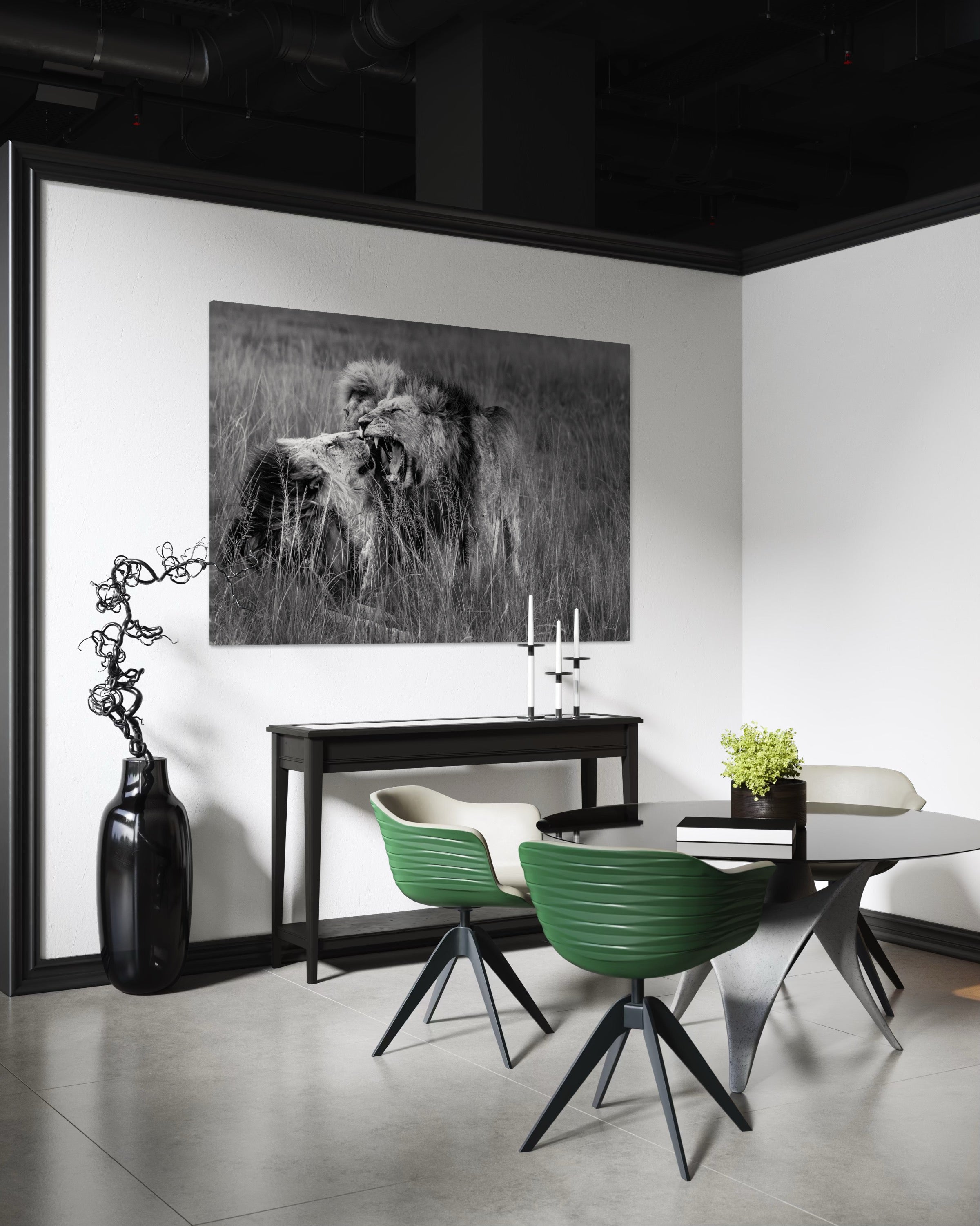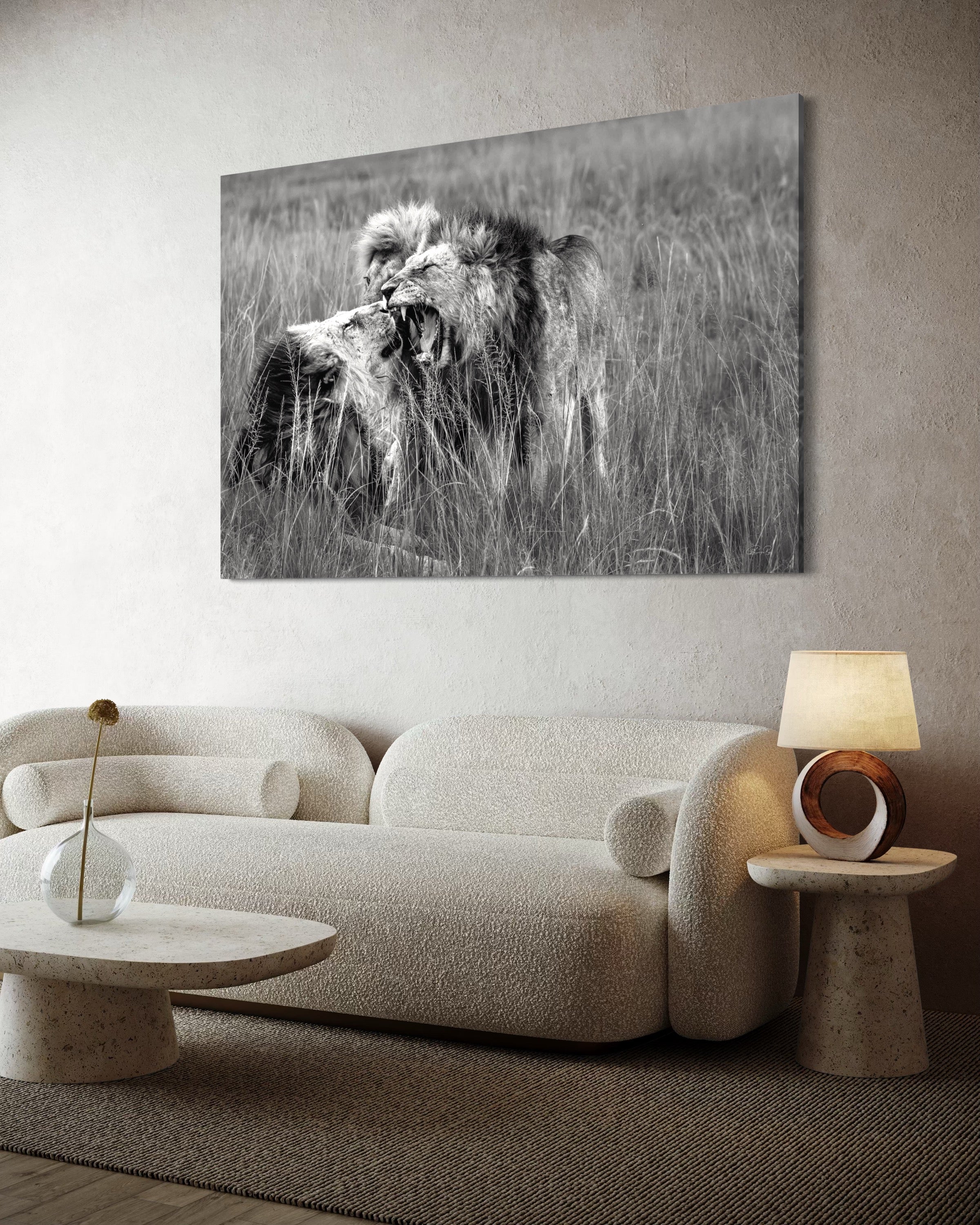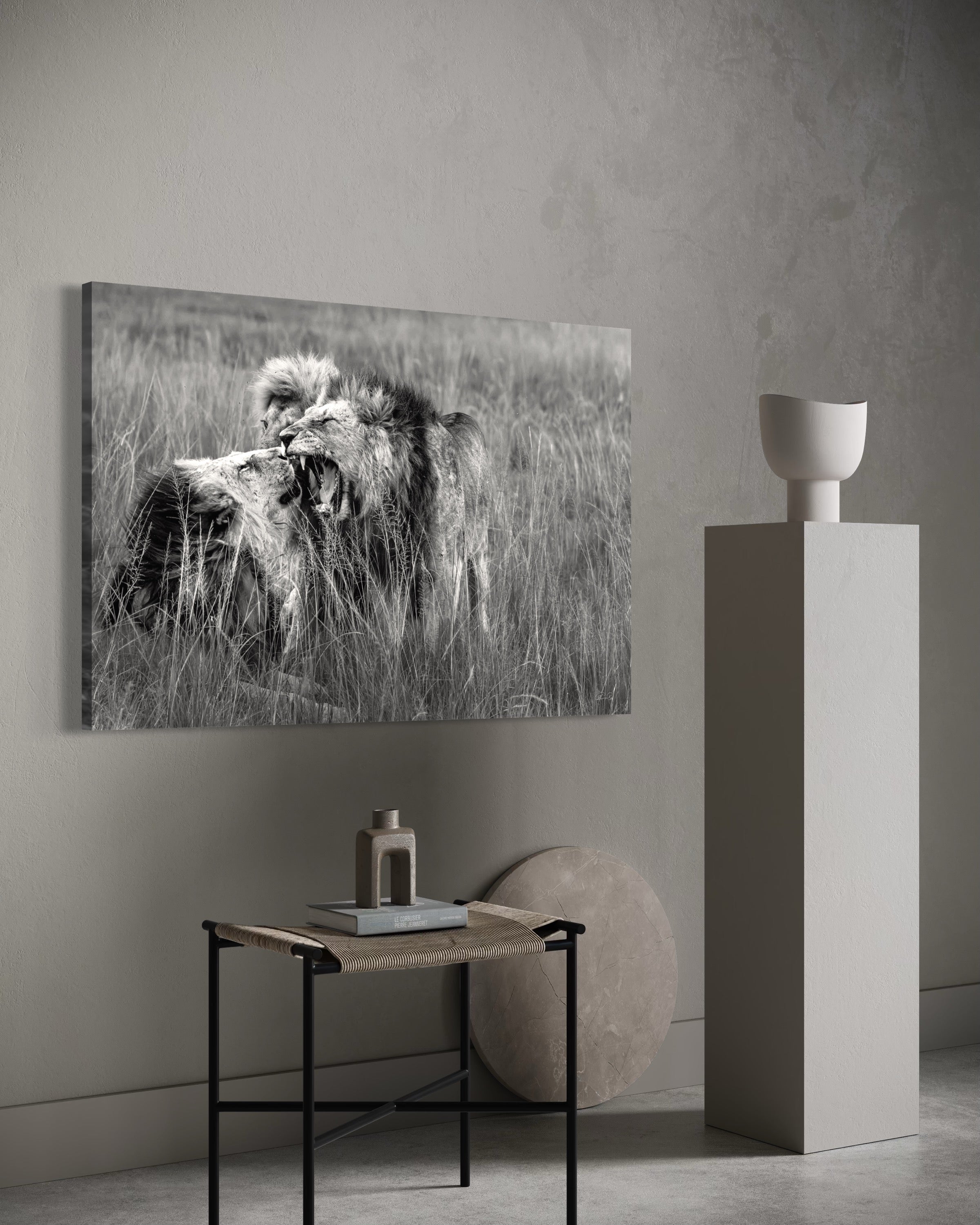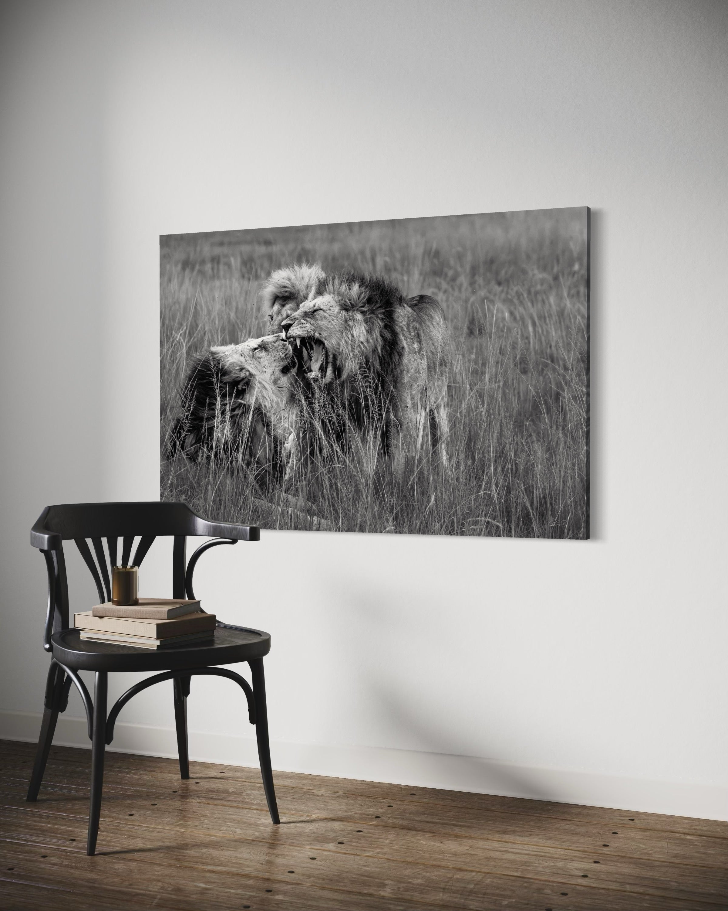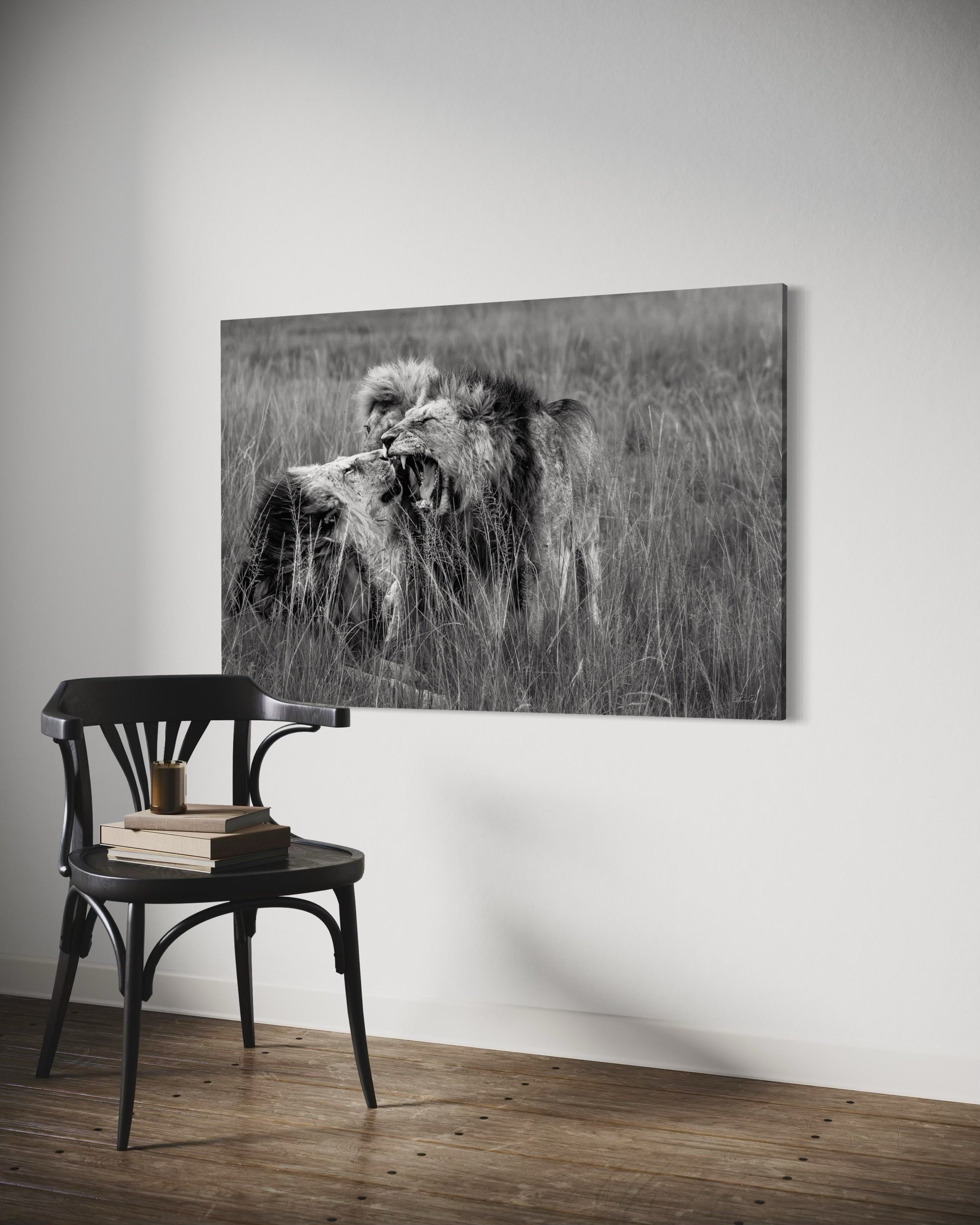 As a fine art wildlife photographer, I knew this was no ordinary sighting. It was a living portrait of unity and raw masculinity, softened by the emotional intelligence only true companionship offers. Through the drama of storm clouds and light, I pressed the shutter — not merely to capture lions, but to honor their connection, their legacy, their silent language.