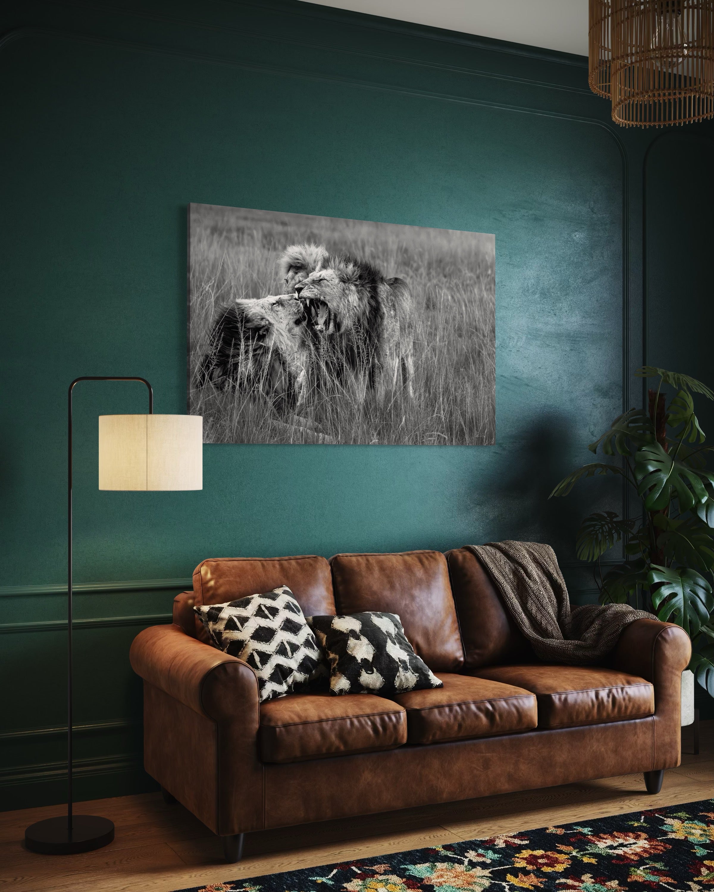 This fine art print is more than an image. It is a story of three brothers — born of the same blood, shaped by the same land — standing as one beneath a sky preparing to break. A timeless tribute to the sacred strength of kinship in the wild.