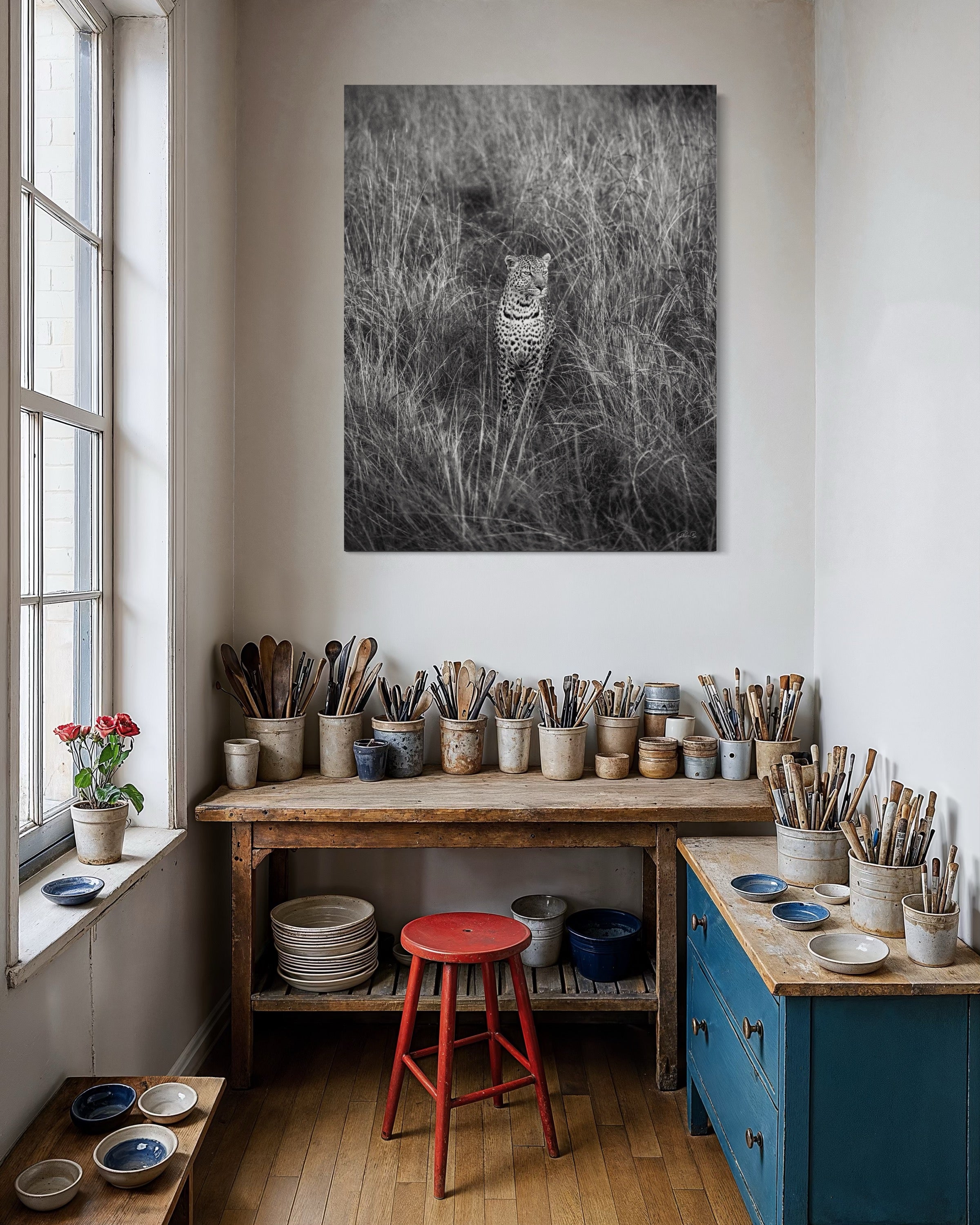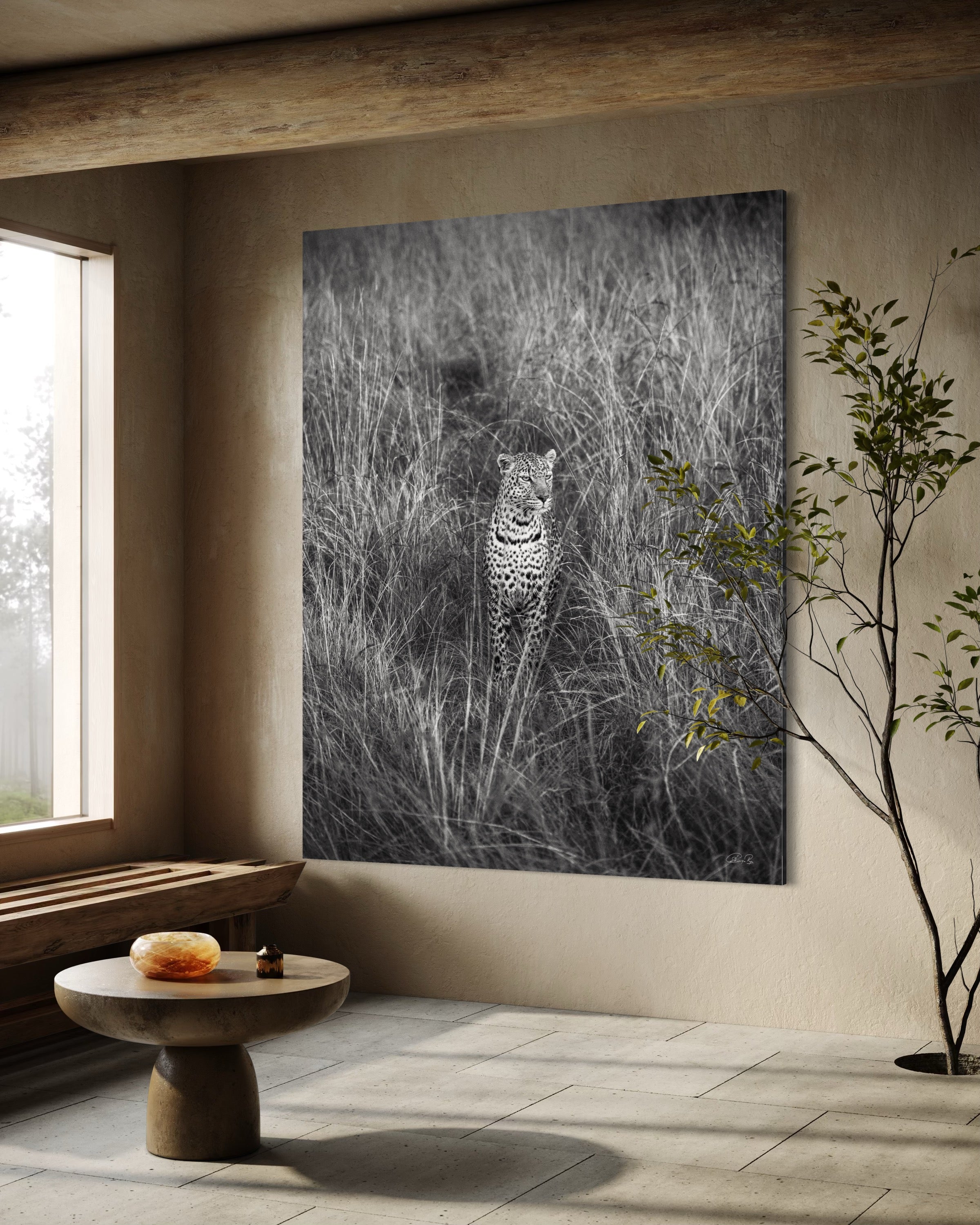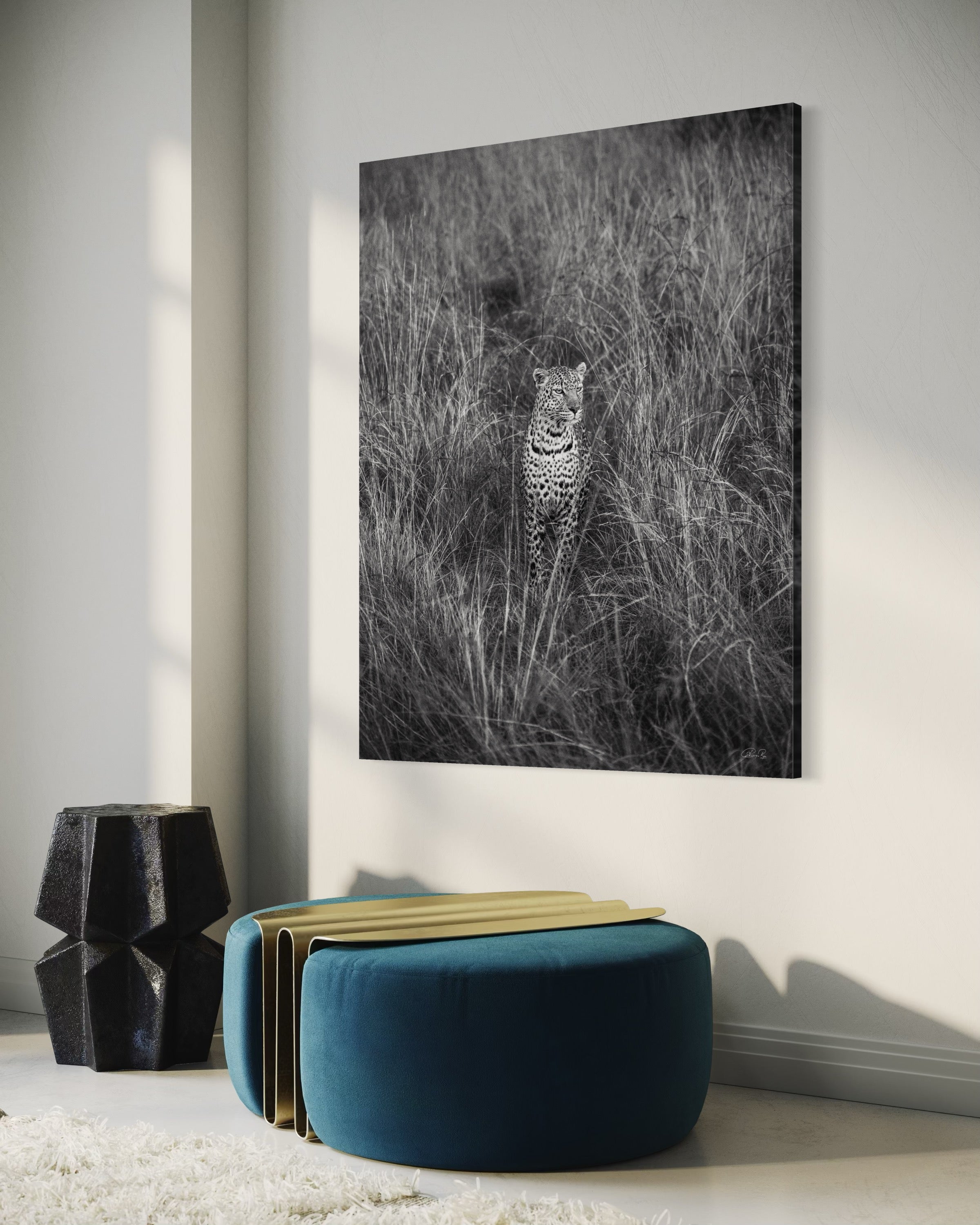 To encounter one is fortune. But to follow one of the most celebrated leopards of the Masai Mara — Luluka — across golden grasslands for an entire evening is nothing short of a privilege. Daughter of the iconic leopard Kaboso, Luluka has inherited not only the grace and power of her lineage but also its quiet majesty. Her name is whispered with reverence by guides, trackers, and wildlife lovers alike. She moves like water — fluid, precise, unhurried — blending into the land as if born of it. Her coat catches the last light like a constellation come to earth.On this particular evening, the Mara opened its secret pages and allowed me to walk a few chapters with her. I watched as she navigated the land with confidence and calm, alert yet unthreatened, weaving her story between shadows and silence. Every step was a study in elegance, every pause a lesson in poise.To capture Luluka through the lens is to capture a living myth — an apex predator wrapped in poetry. This fine art photograph is more than a portrait of a leopard; it is a tribute to her legacy, her lineage, and the untamed spirit she represents.For those who know the wild, Luluka is not just a name — she is a symbol. Of survival, of beauty, and of the wilderness that still keeps its secrets.