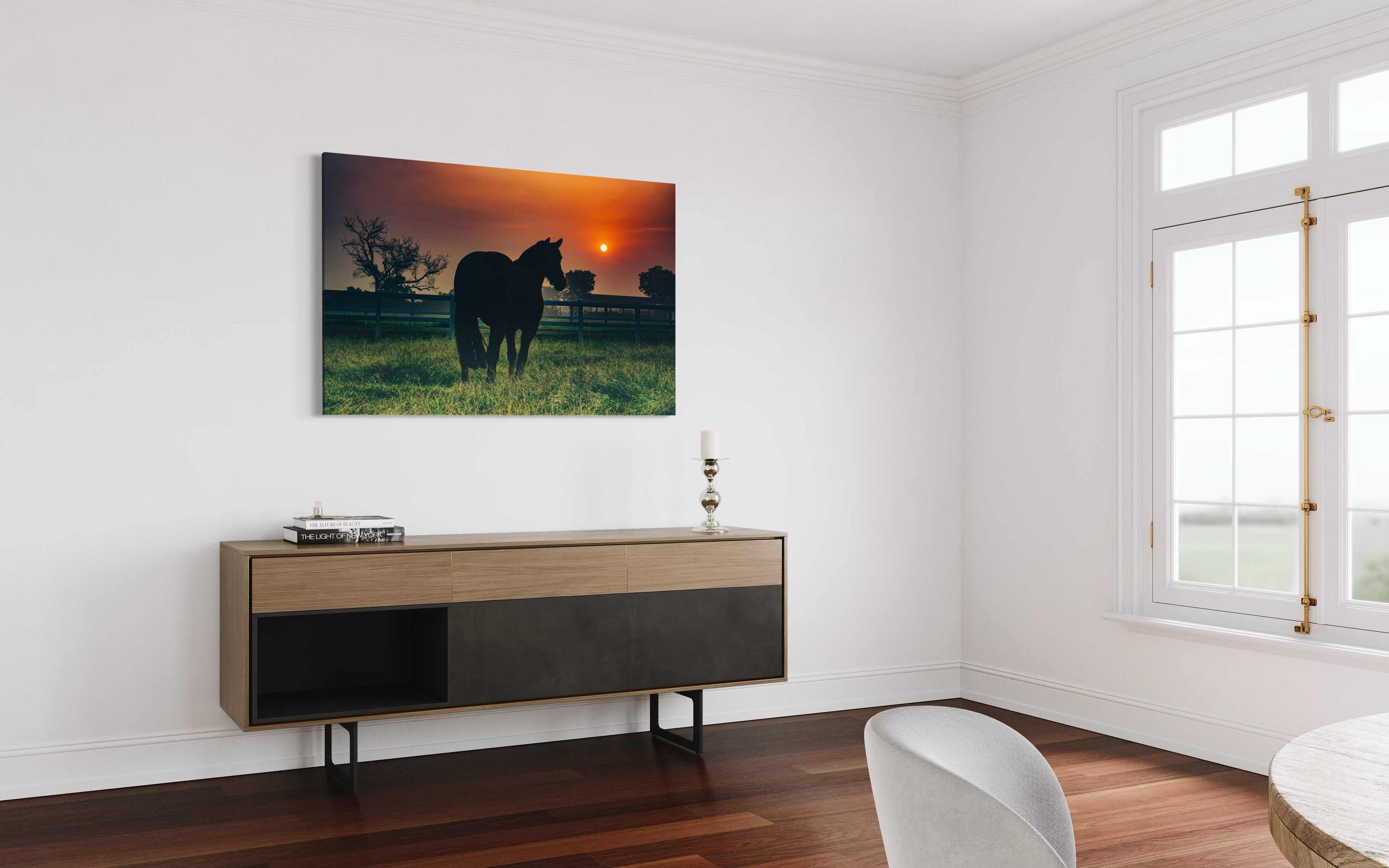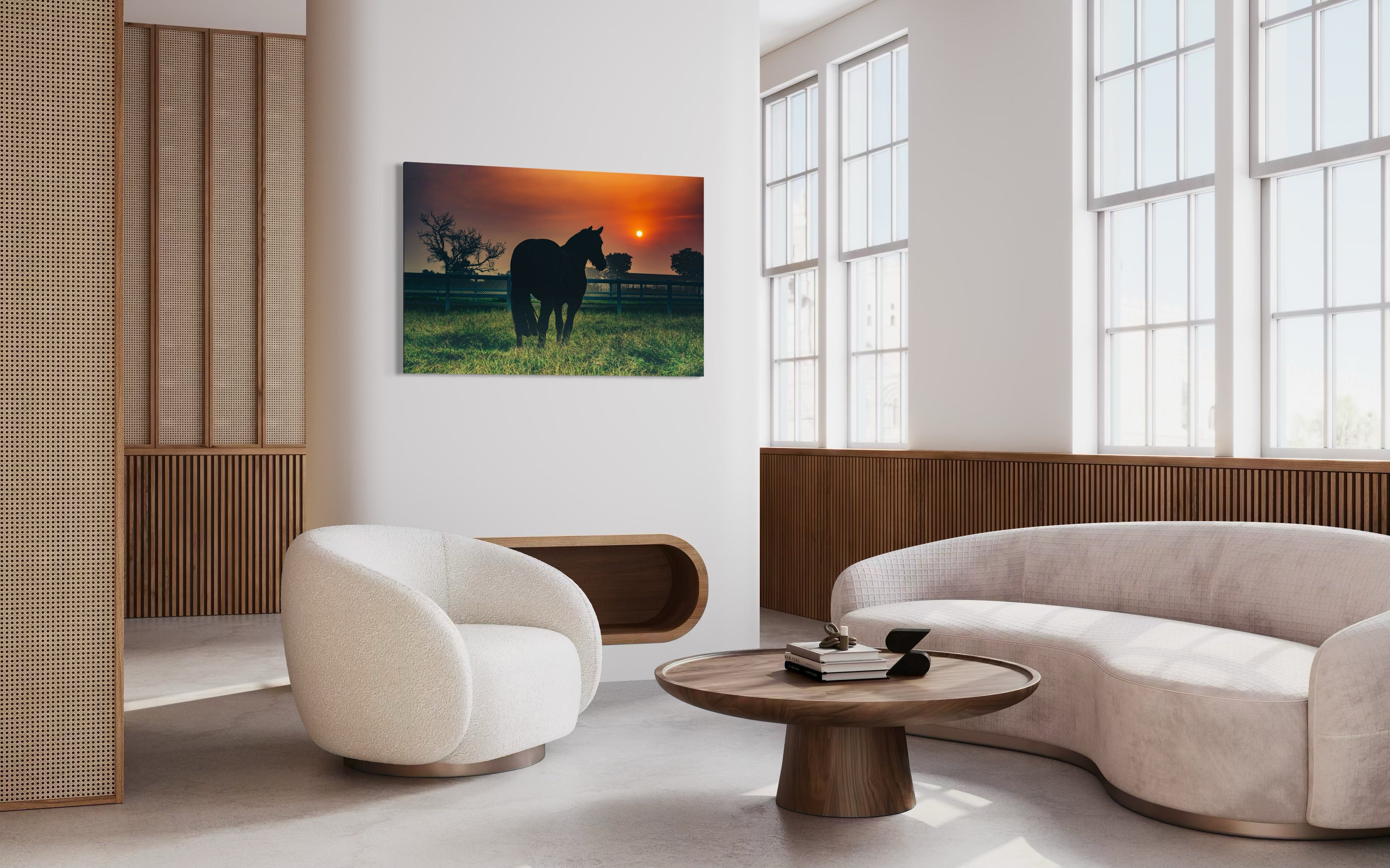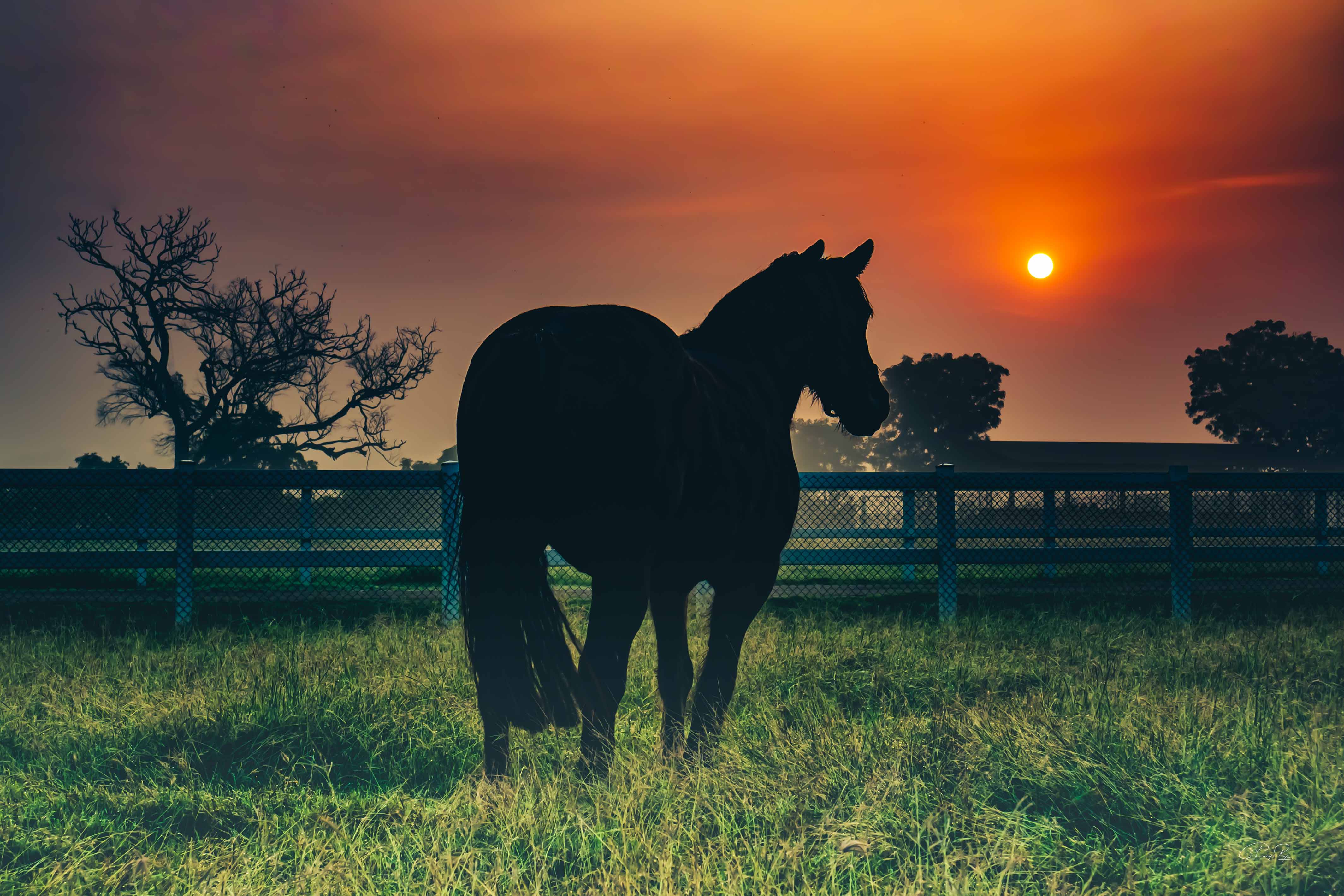 On a quiet early morning at the stud farm, a moment of pure calm unfolded before me. Amidst the beauty of nature, a mare stood still, her eyes following the gentle rise of the sun. She radiated a quiet grace, as if in tune with the world around her, and the scene felt almost sacred.