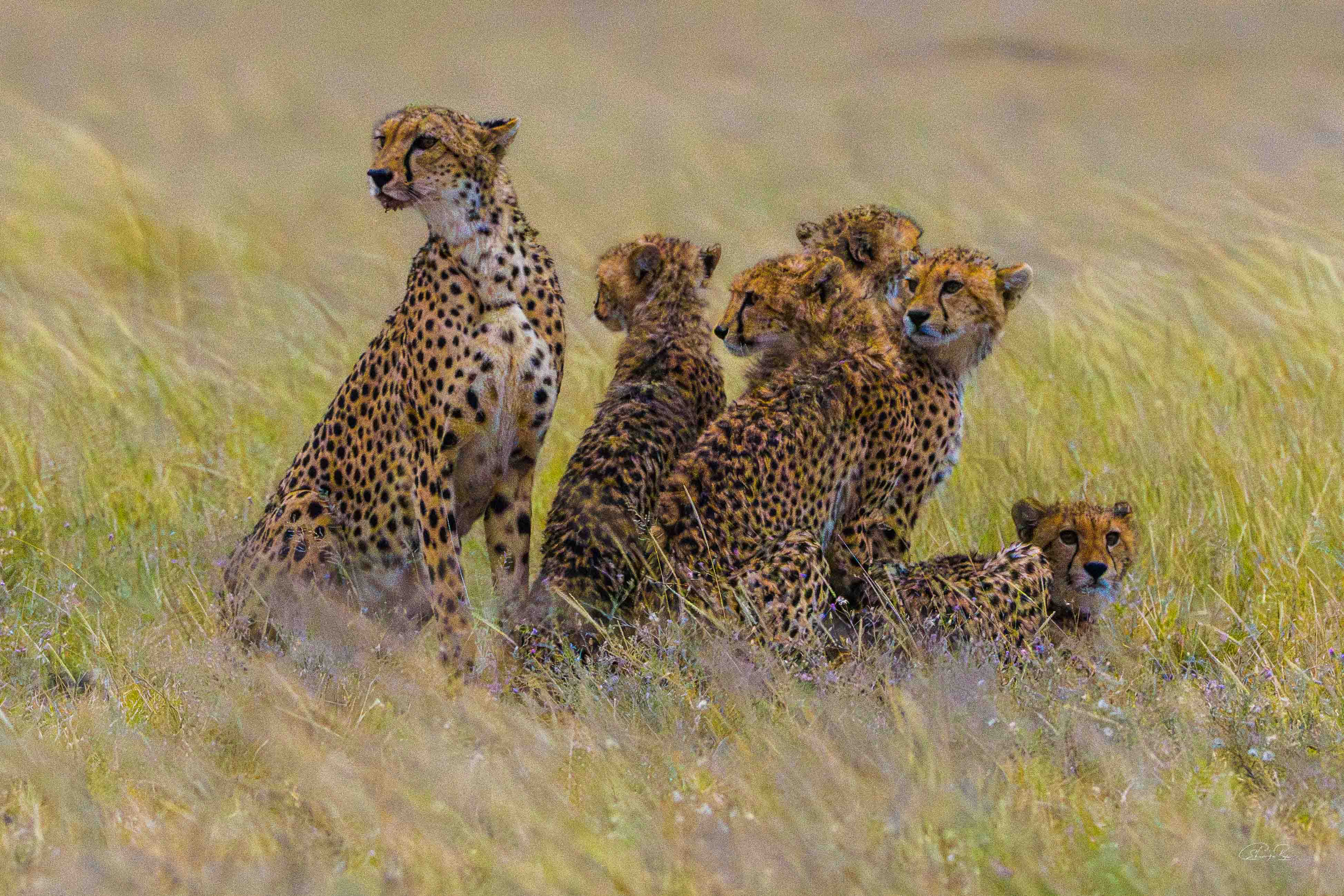 In the vast, unforgiving wilderness of Amboseli, survival is an art — and motherhood, a sacred mission. To witness a cheetah mother with her five near-grown cubs is to glimpse a rare and awe-inspiring success story in the wild. Raising five cubs to this stage is a feat few cheetahs accomplish. It speaks of exceptional strength, relentless vigilance, and a mother's unyielding devotion. Every day, she has protected them — from hyenas, lions, and hunger. Every decision she made carved their path forward. As I watched them — the mother poised, the cubs alert yet playful — I felt both wonder and gratitude. Their movements were fluid, their bond unmistakable. They were not just surviving; they were thriving. And to capture that unity, that energy, through the lens was a moment of rare privilege.