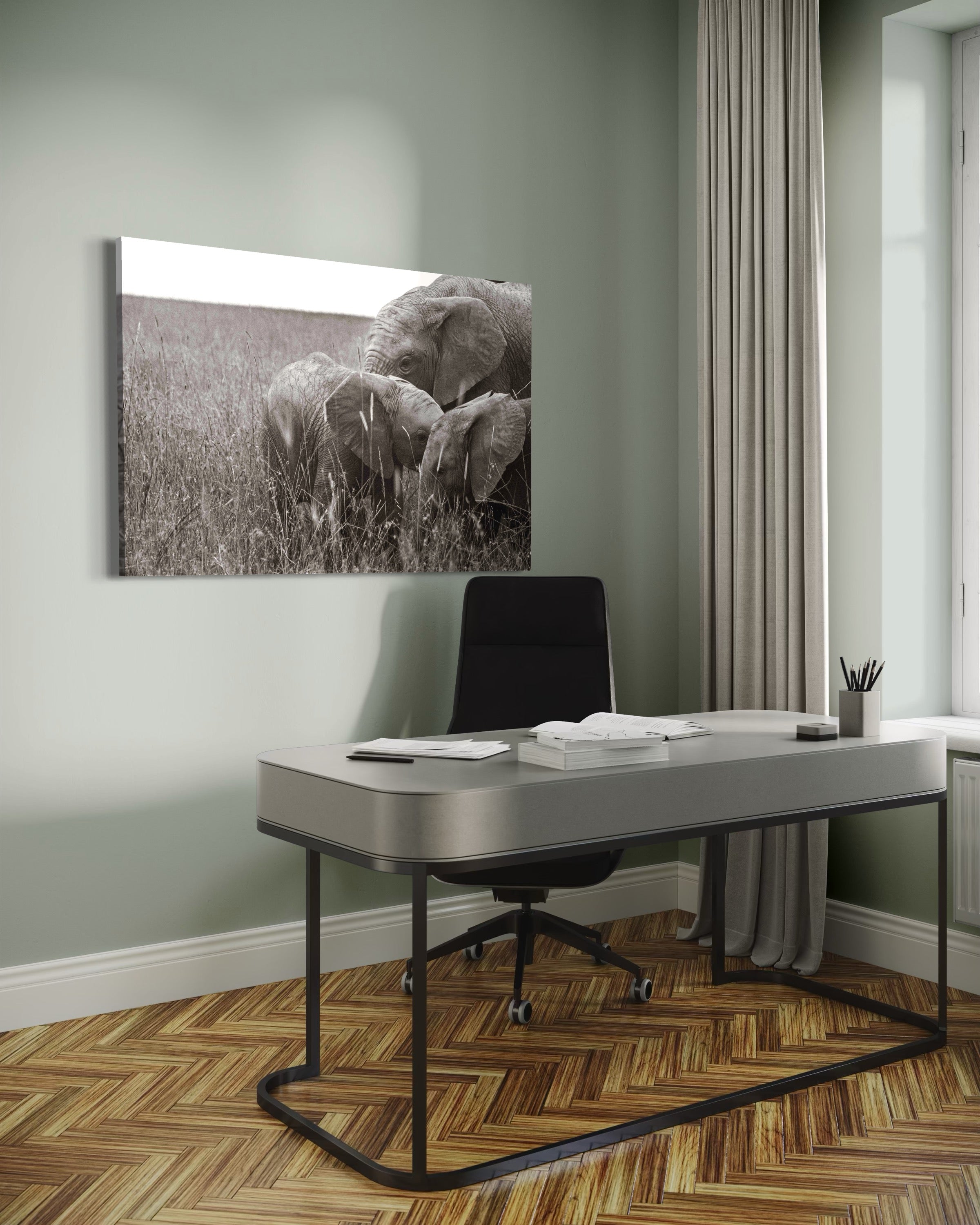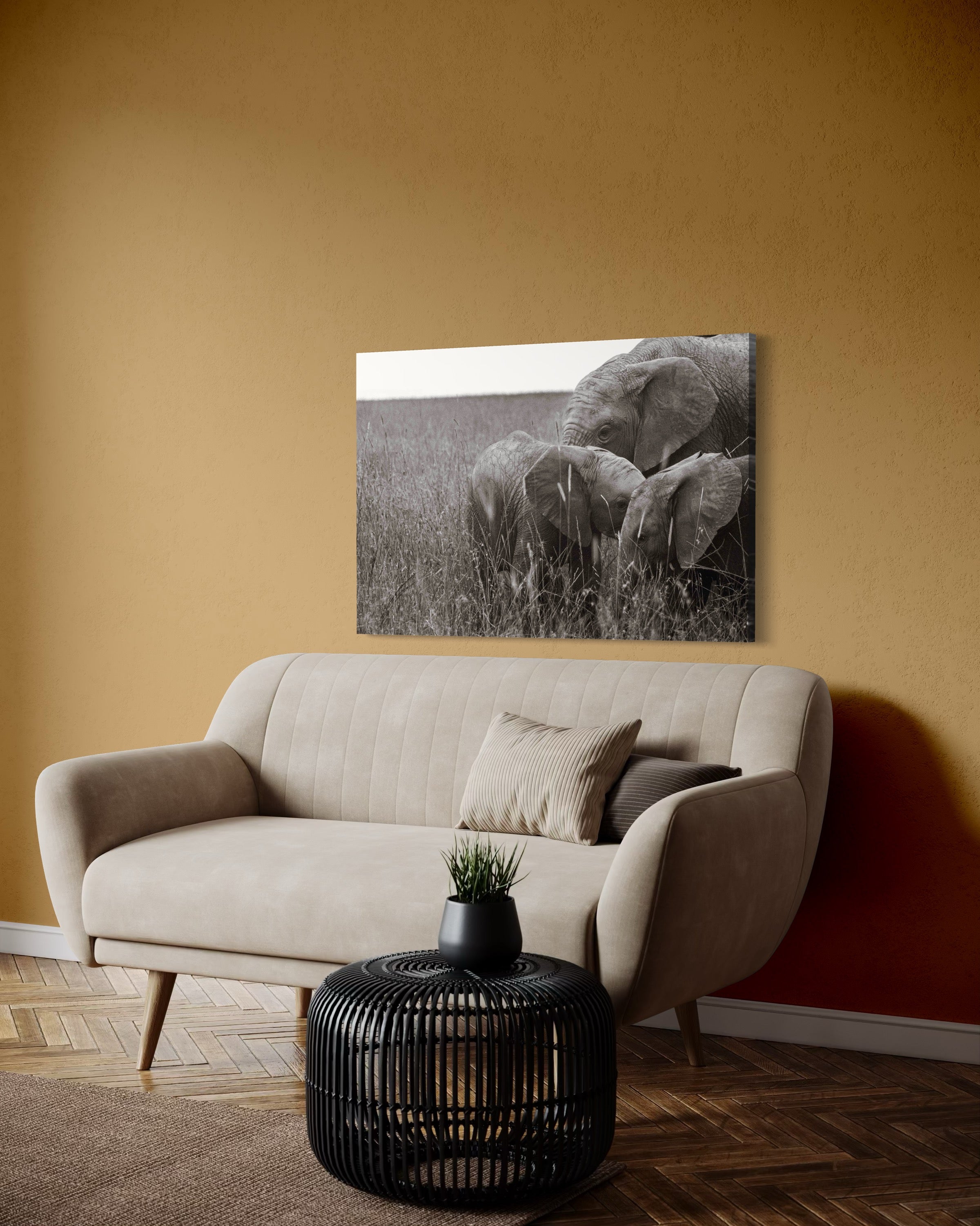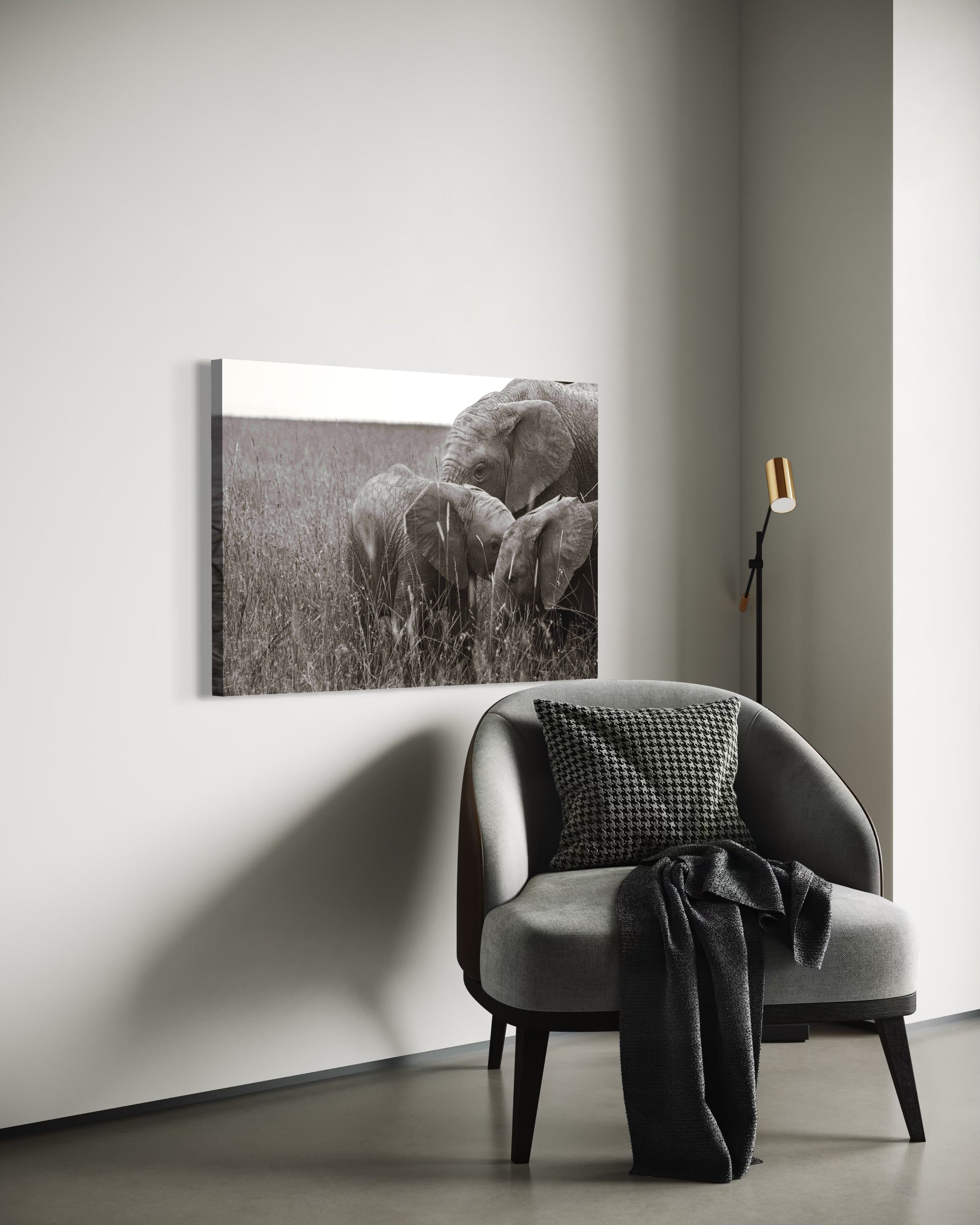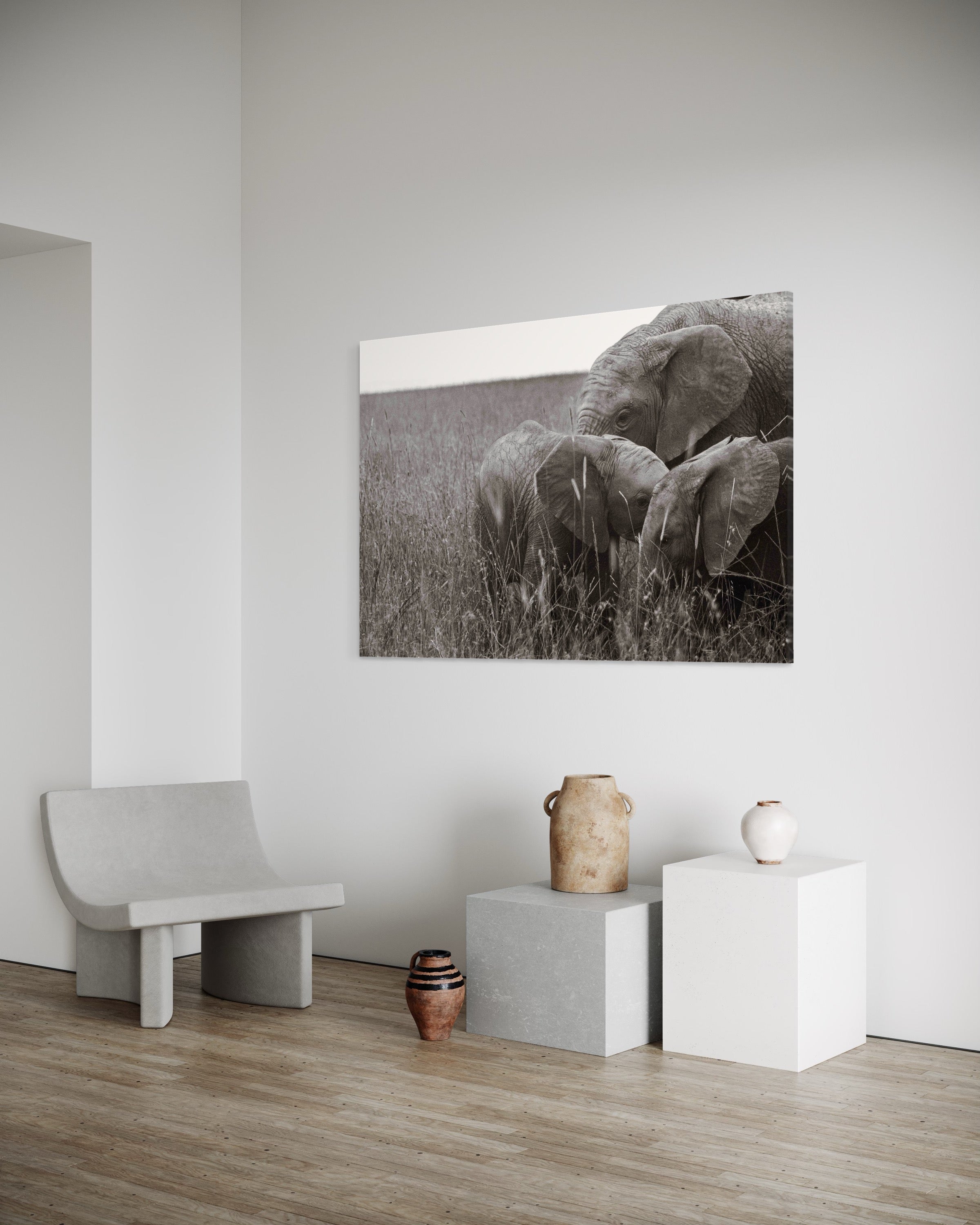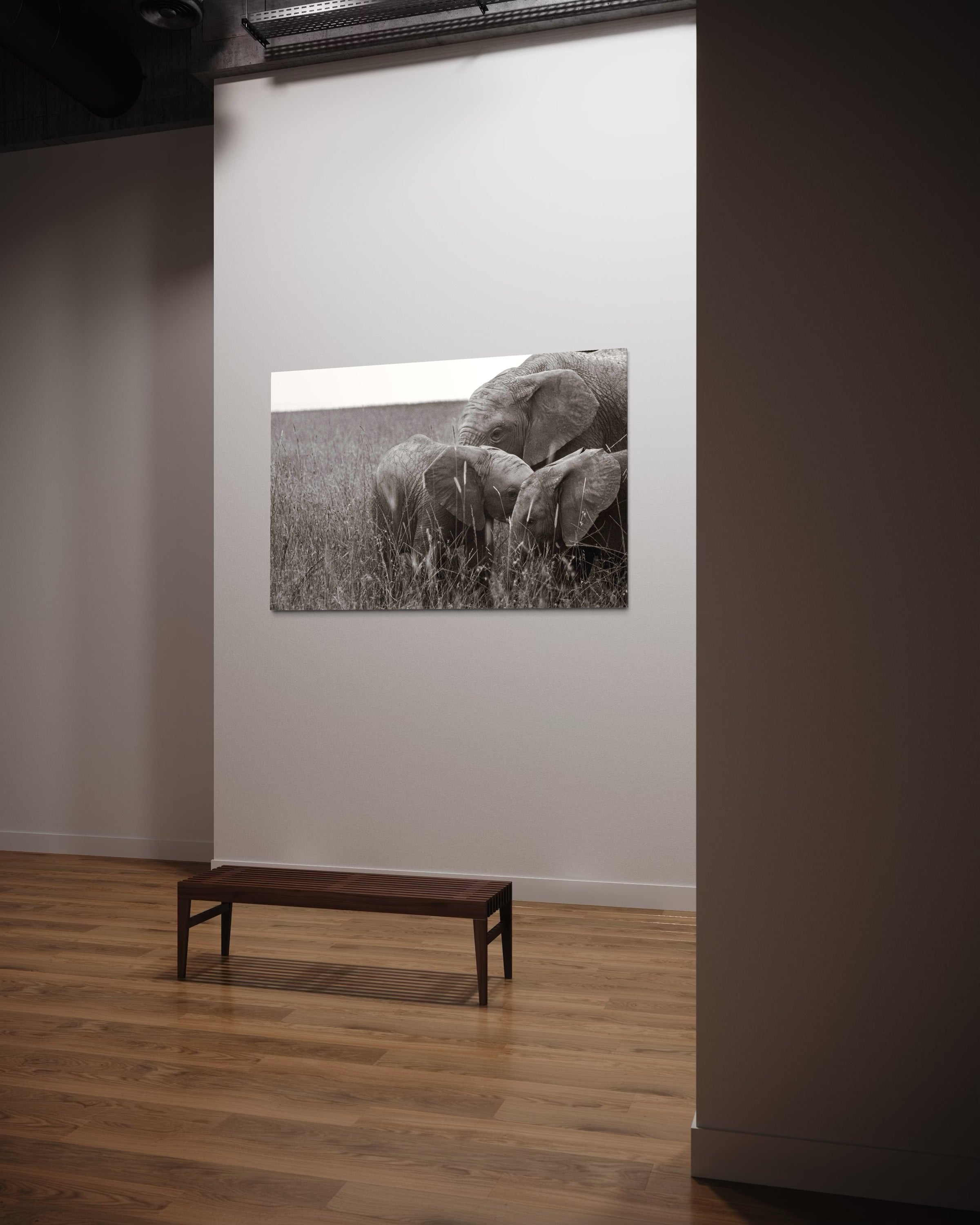 As a fine art wildlife landscape photographer, I was humbled to stand before this procession of togetherness — an unchoreographed ballet of massive beings moving as one. I captured the moment in monochrome, allowing form and emotion to rise above color. In black and white, the elephants become more than subjects — they become symbols: of harmony, of family, of timeless communion with the earth.