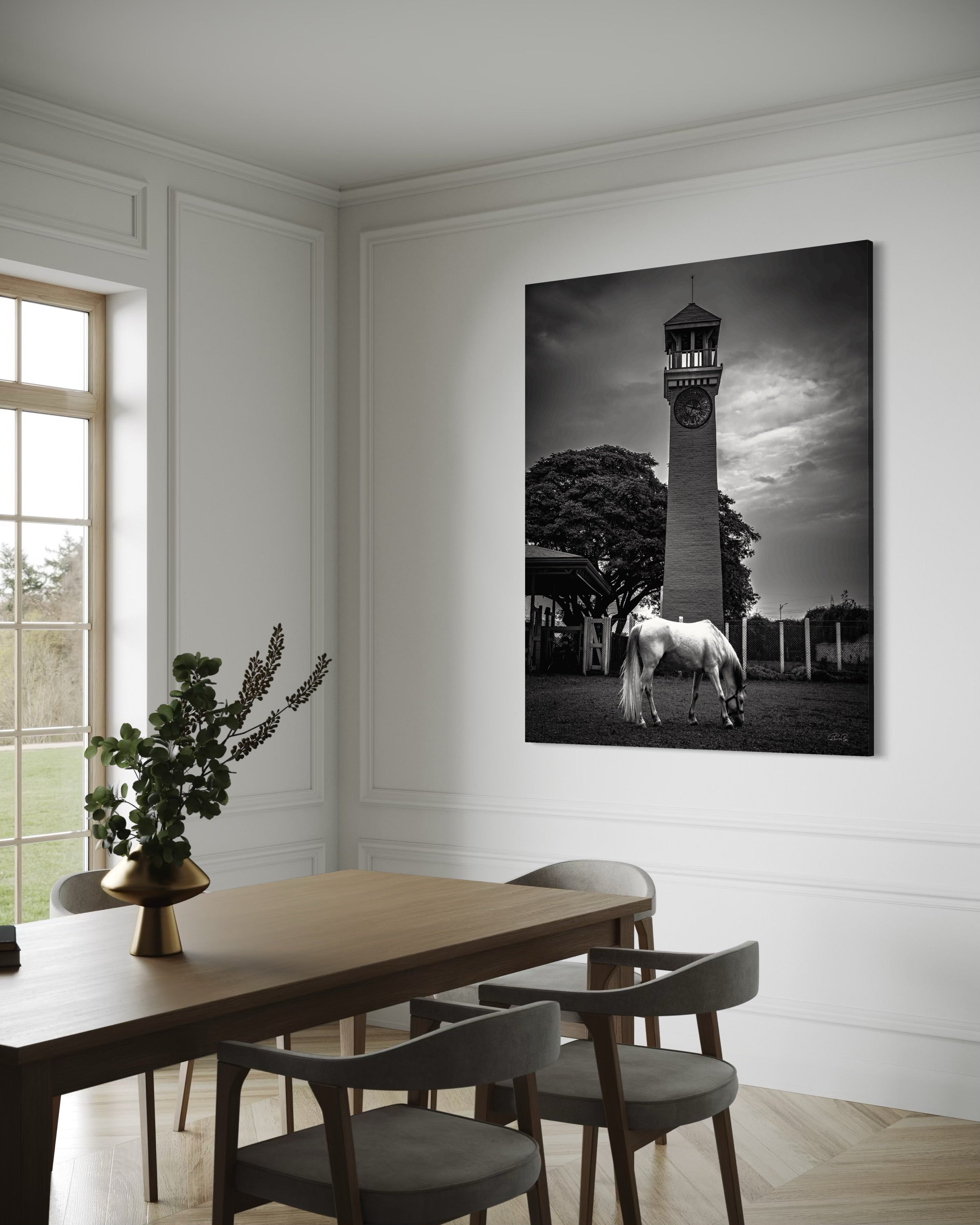 In the enchanting landscape of India's premier thoroughbred nursery, the clock tower has stood tall for countless decades, bearing witness to the birth of champions and the legacy of the stud. Its majestic presence and architectural splendor have captivated my heart as a resident veterinary officer at the stud. Amidst my devotion to veterinary practice, I also embrace the art of fine photography, and the clock tower has always beckoned me to capture its timeless essence. One fateful evening, as scattered clouds painted the sky, a moment of perfection unfolded before my eyes. A handsome grey colt grazed gracefully upon the earth, framed by the backdrop of the beloved clock tower. It was a scene of pure poetry, a fleeting instant that I had yearned for so long. In that single click of my camera, I immortalized my cherished monument and treasured creature, united in a harmonious embrace. Truly, I could ask for nothing more, for I felt truly blessed by the convergence of my favorite subjects in one exquisite frame.